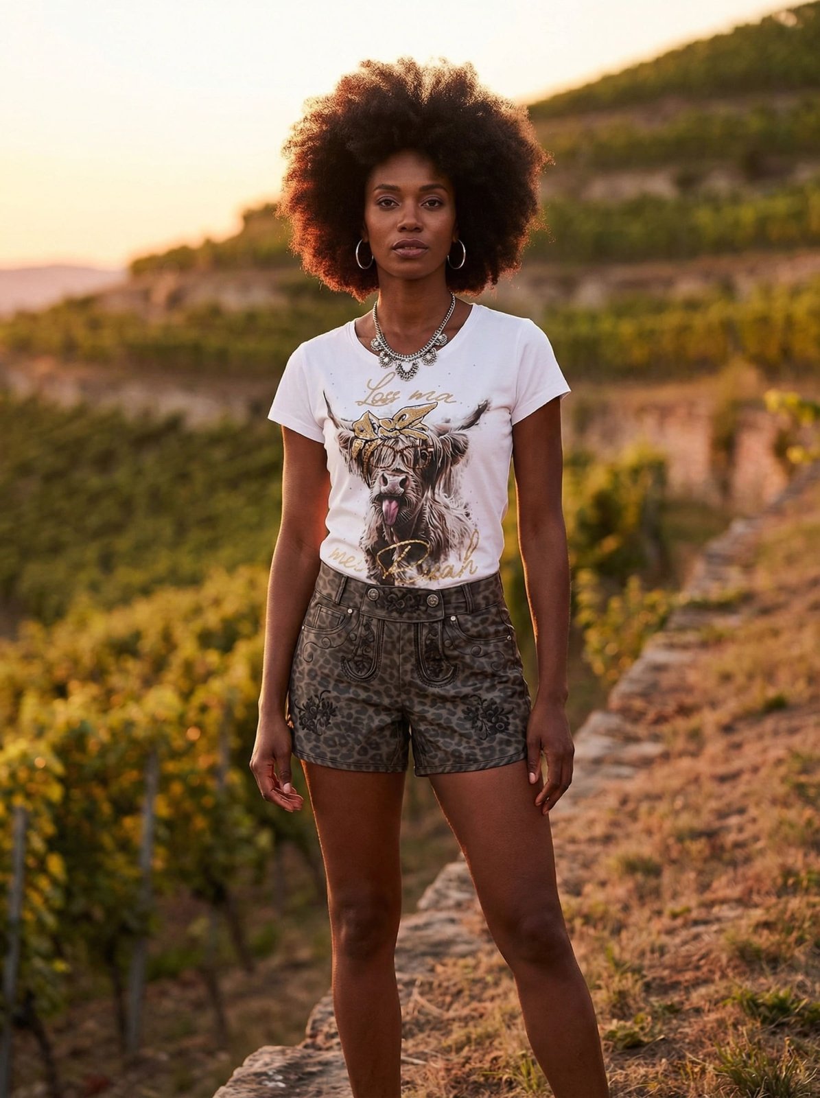 Diese längere Shorts begeistert mit ihrem feinen Leo-Allover-Print in Grautönen – ein moderner, femininer Look, der sich perfekt mit Trachten-Bluse oder Dirndlbluse kombinieren lässt. Die traditionelle Stickerei im Lederhosen-Stil an den Taschen und dem Hosenlatz verleiht ihr einen authentischen Trachten-Charakter.