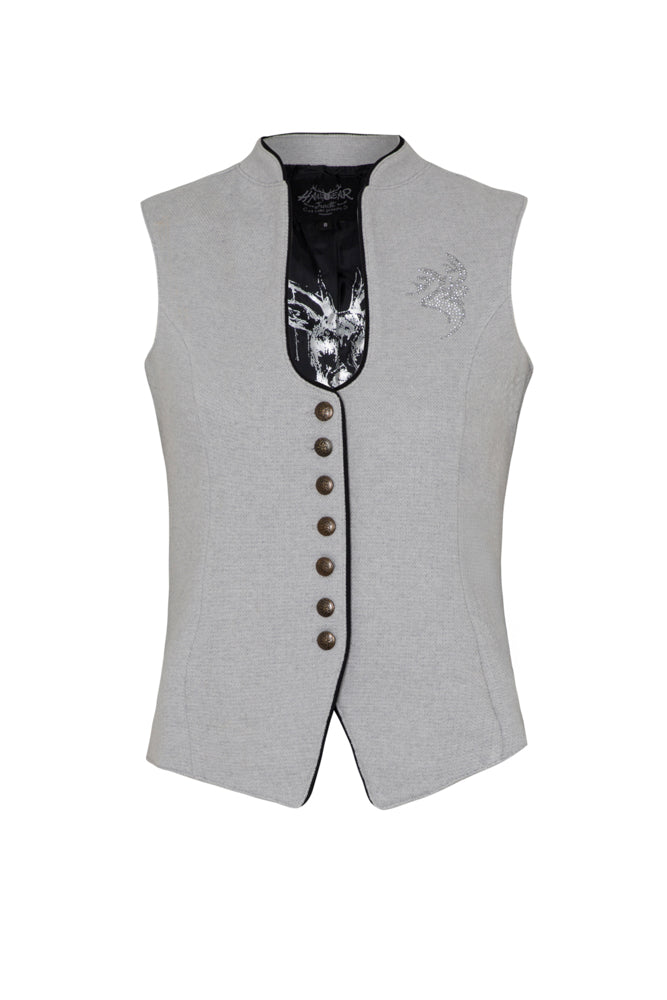 Diese klassische Trachtenweste „QALINA Offwhite“ von Hangowear verleiht jedem Outfit den perfekten traditionellen Charme. In elegantem Weiß gehalten, lässt sie sich spielend leicht kombinieren und bringt Damenstil mit einem Hauch von Alpenflair in den Alltag. Ideal, um klassische Looks frisch und lebendig zu gestalten!