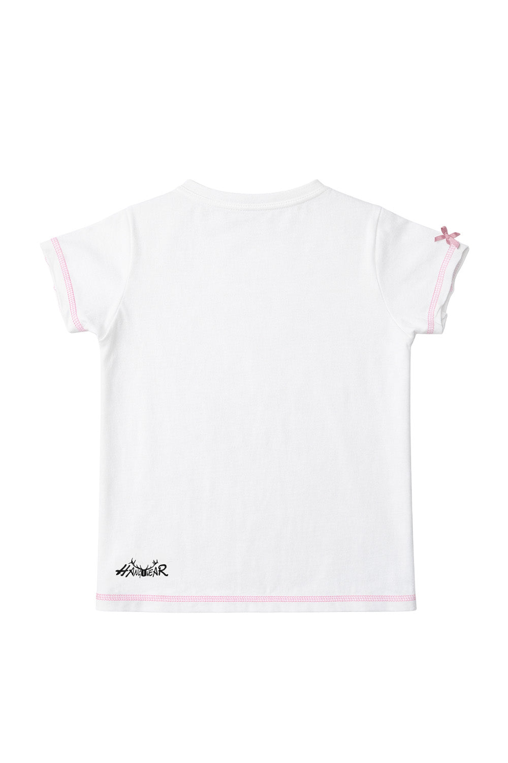 - Details: Rundhals, kurze Ärmel, pinke Ziernähte, kleine pinke Schleifen an den Schultern